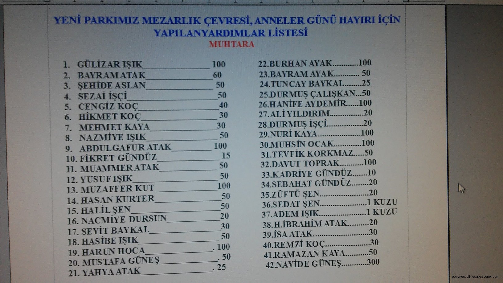 2017 ANNELER GÜNÜ HAYRI SONUÇLARI
